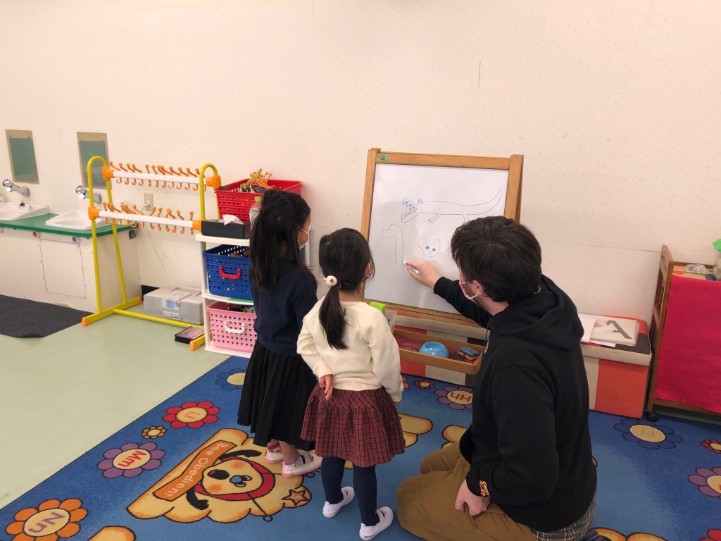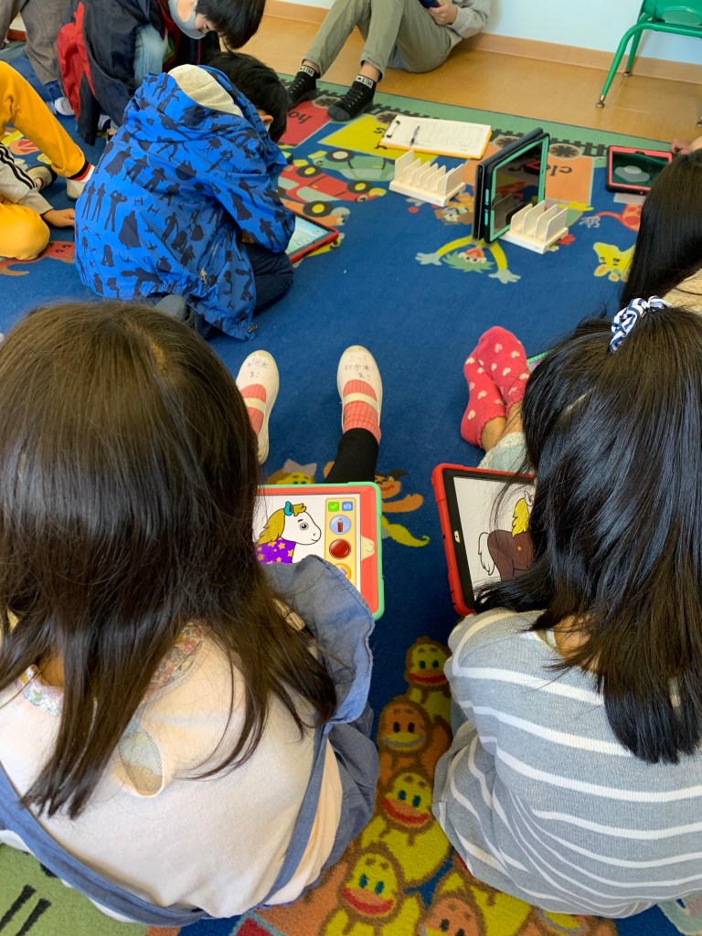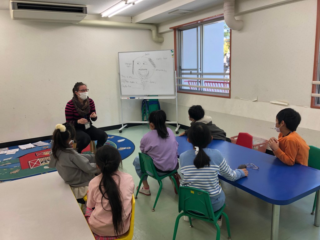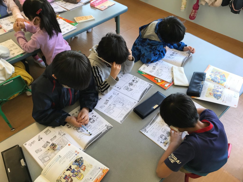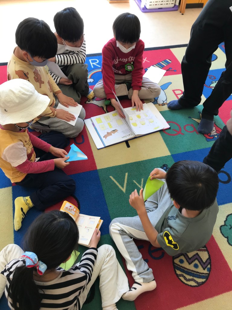 The Orange class started Kid’s Box 3 today. They reviewed what they know about the characters and practiced describing people using adjectives.The preschool classes learned Easter songs today in music class!The children had a lot of fun playing Marco Polo and running from their teachers in gym class.During a transition, the children practiced their fine motor skills and did paper origami together.The Foxes learned about facial features and practiced identifying each body part.The Cubs played a fun game of pictionary and tried to guess the animals being drawn on the whiteboard.In music time, the Takatsuki students practiced musical notes on the piano. They worked together to review the keys.The preschool classes learned about numbers and practiced counting using blocks.The elementary classes used their tech time to review vocabulary from the previous year. They talked about shapes, colors, and animals. They really enjoyed the coloring activities.The Red class practiced introducing themselves to each other on the first day back to classes. They also worked on reviewing numbers and colors.The Advanced Orange and Purple classes began with an introduction to their textbook. They reviewed what they remembered about the characters in the stories.